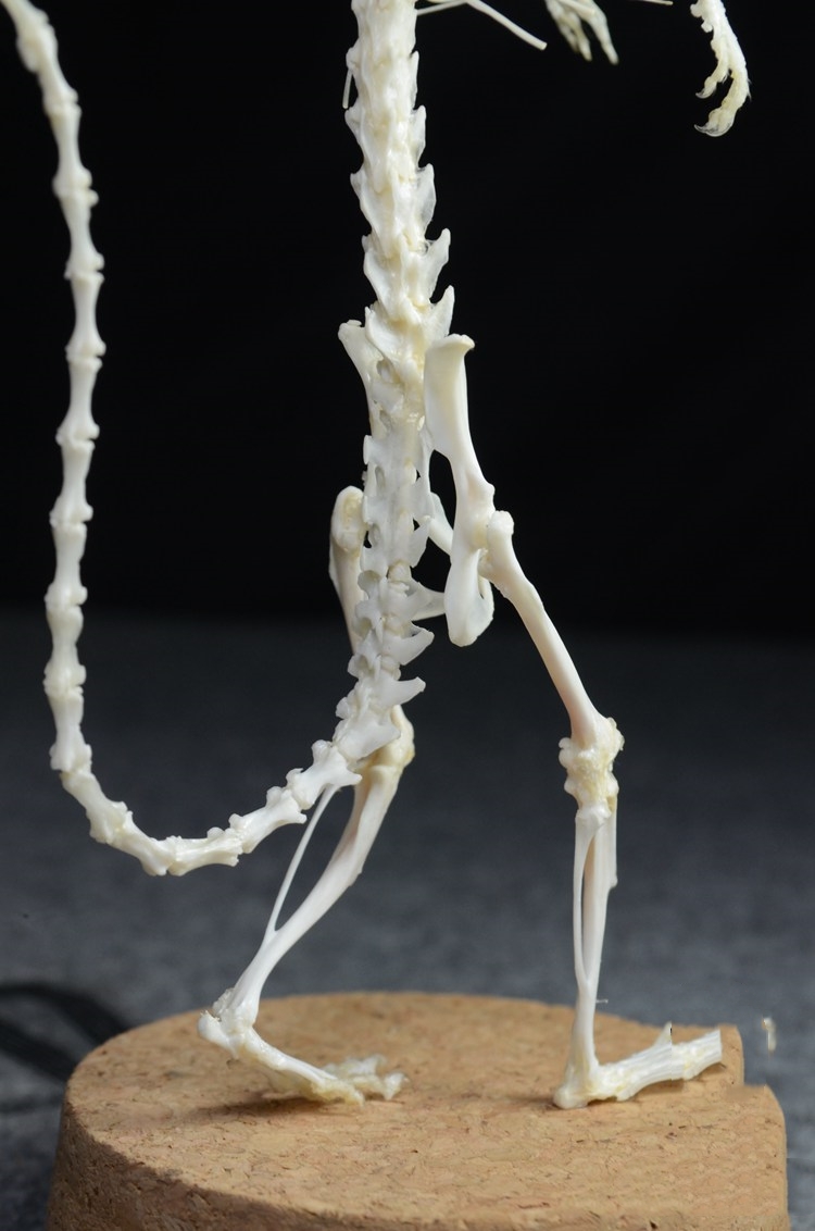 The standing height of the bone specimen is about 18 cm. The specific size depends on the size of the material and is not exactly the same.There are steel needles on the soles of the skeleton feet, which can be inserted anywhere.Stand firmly.The tail is disassembled and shipped. After it arrives, insert the copper wire at one end of the tail into the hole in the caudal spine and fix it with a small amount of glue.