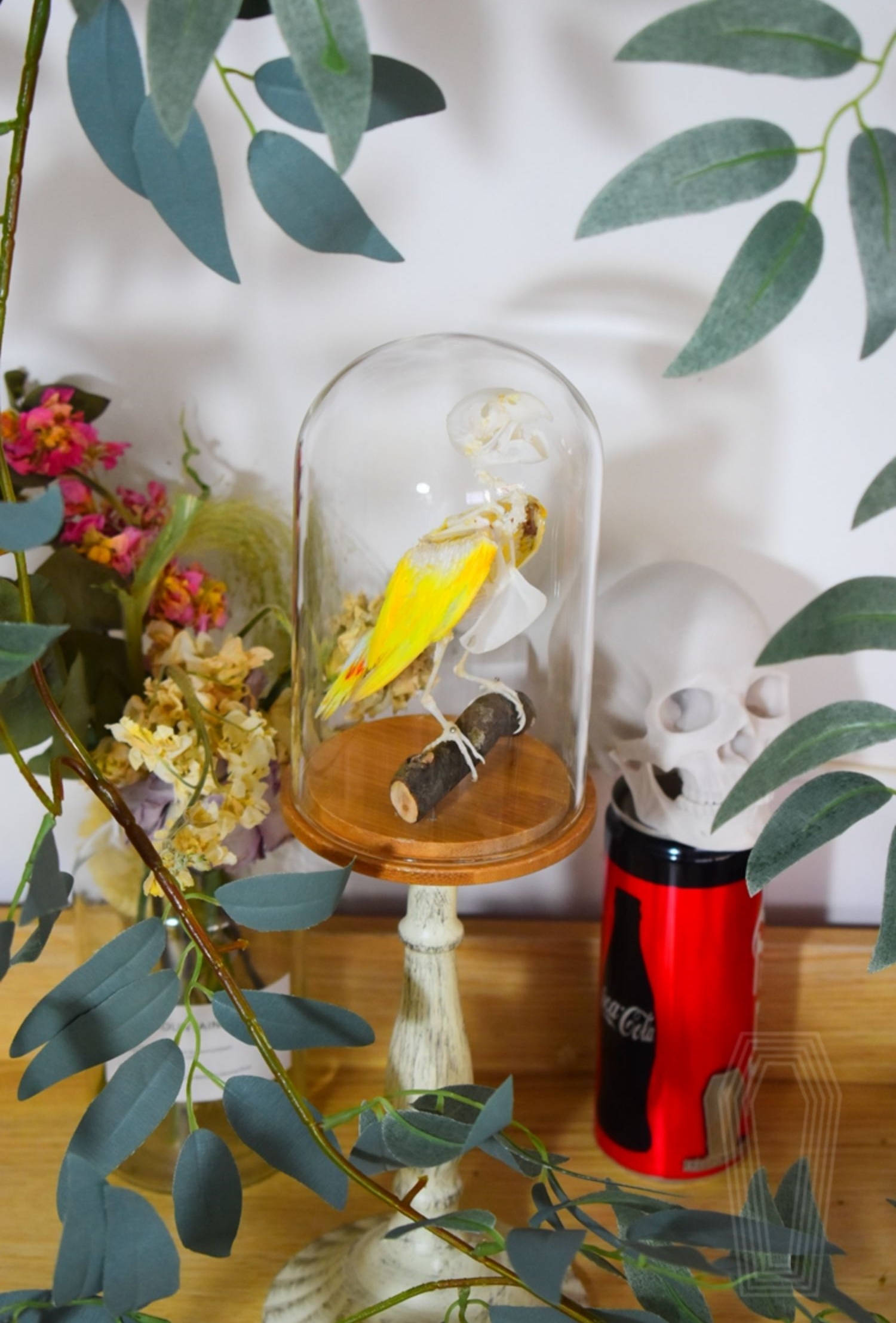 The price includes a glass cover, which has a diameter of 9cm and a height of 15cm.When shipping, the skeleton is integrated with the branches, and the branches are separated from the base, which can be easily assembled after arrival.