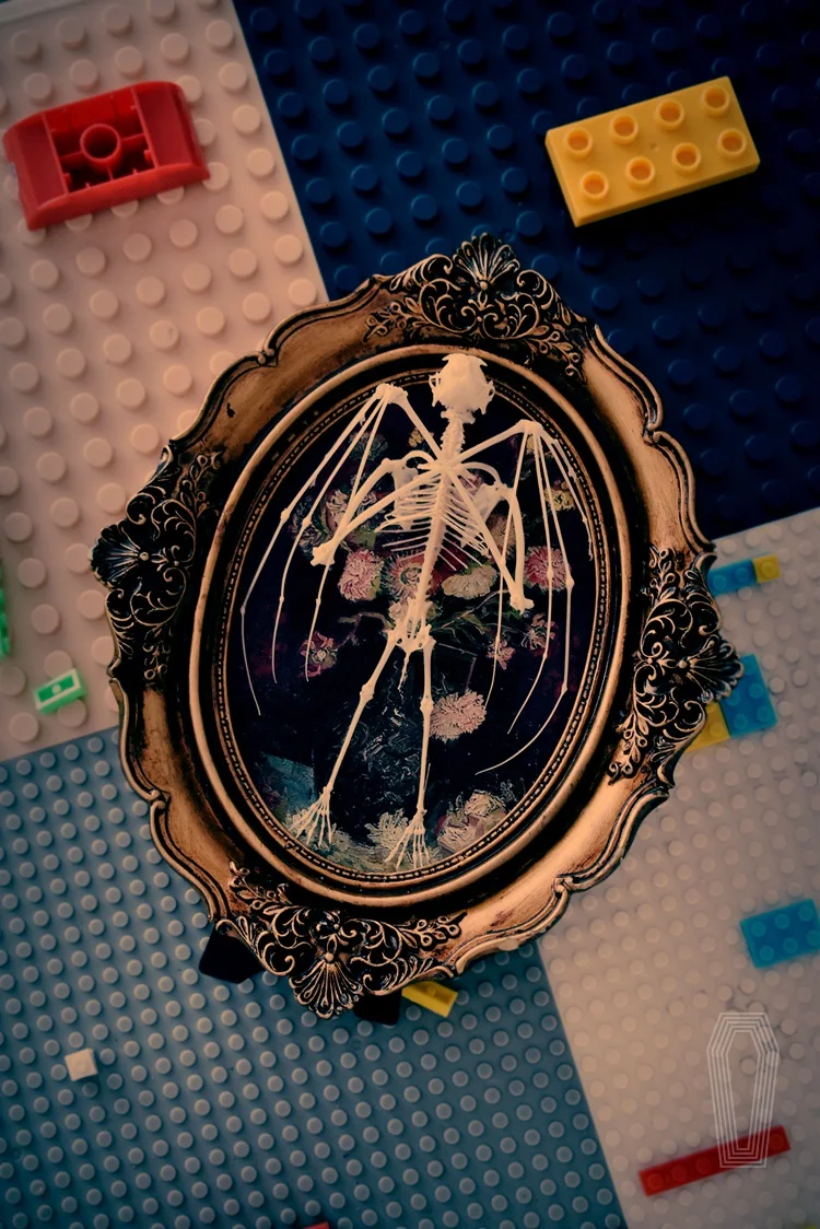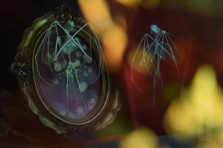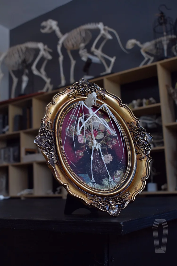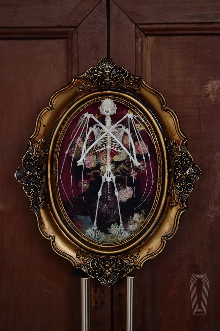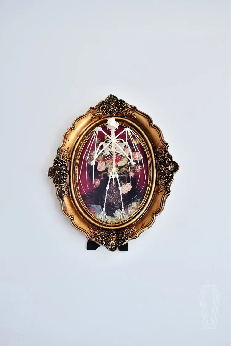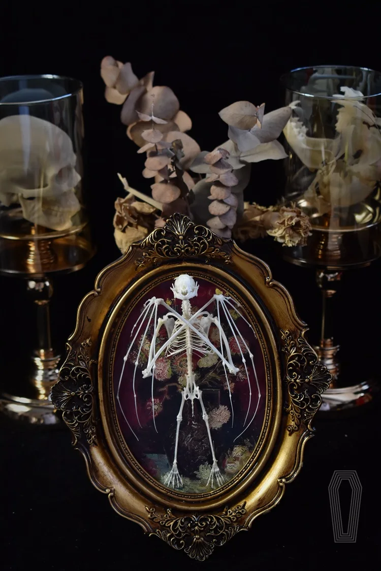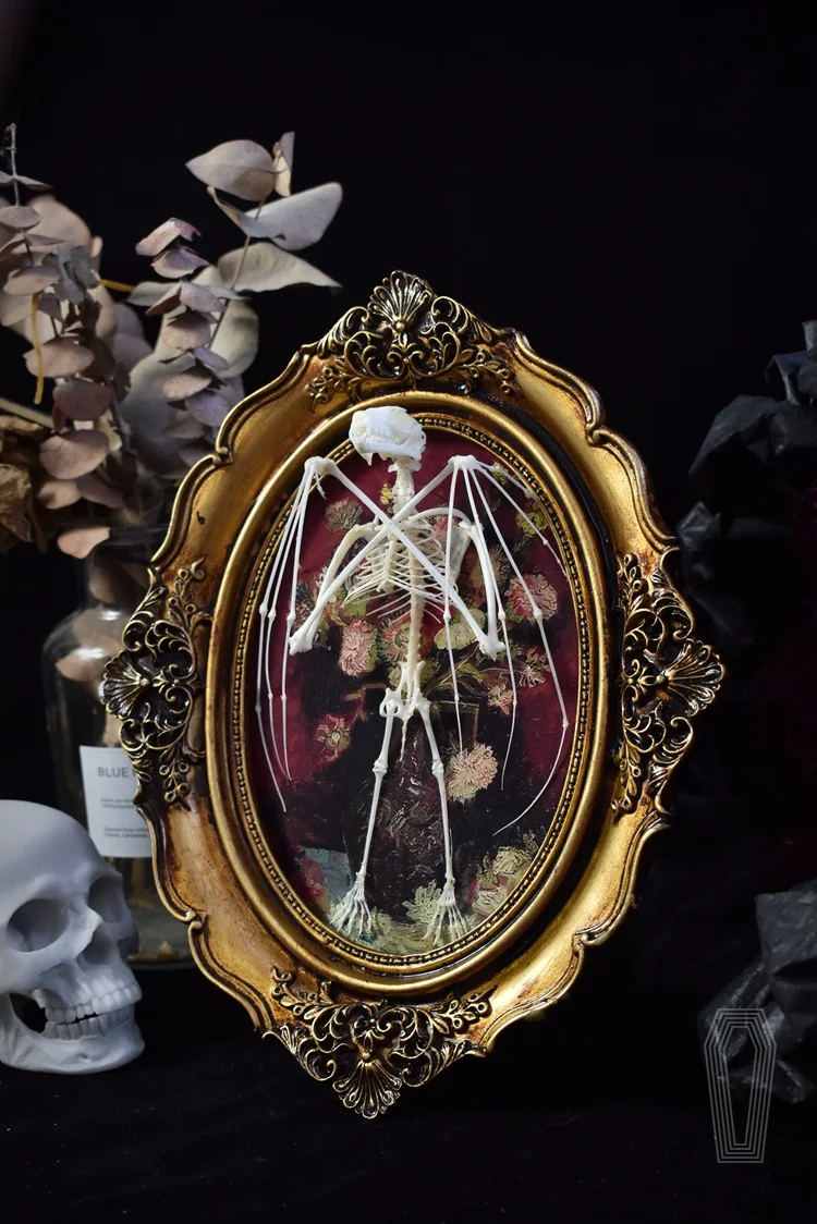 2122 Boutique series Gothic Coffin Photo Frame Bat Skeleton Craft Steampunk Wall Display Ethical Educational Specimen Animal