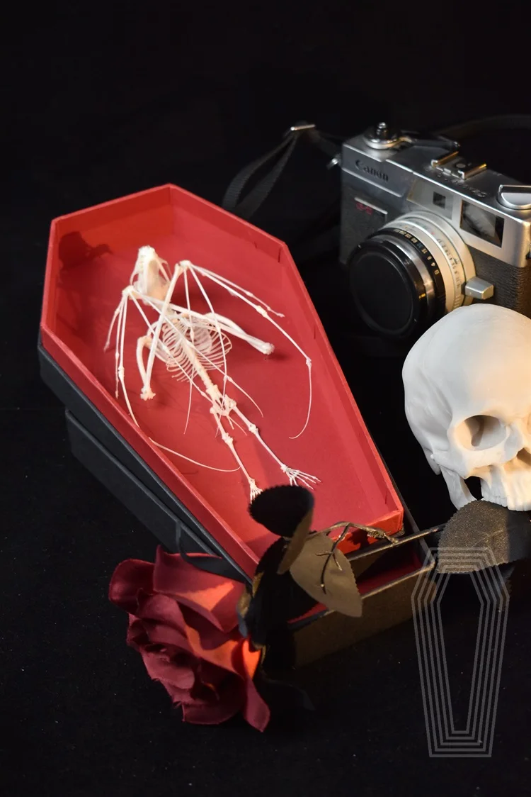 Bahan: spesimen tulang, peti mati yang terbuat dari kertas